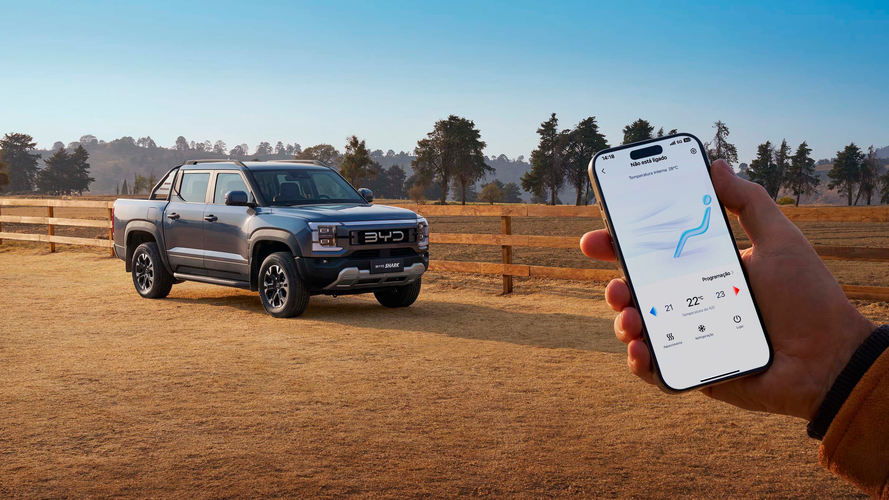 Assuma o controle da sua pick-up na palma da mão. Através do seu celular acesse diversas funções com um único clique.